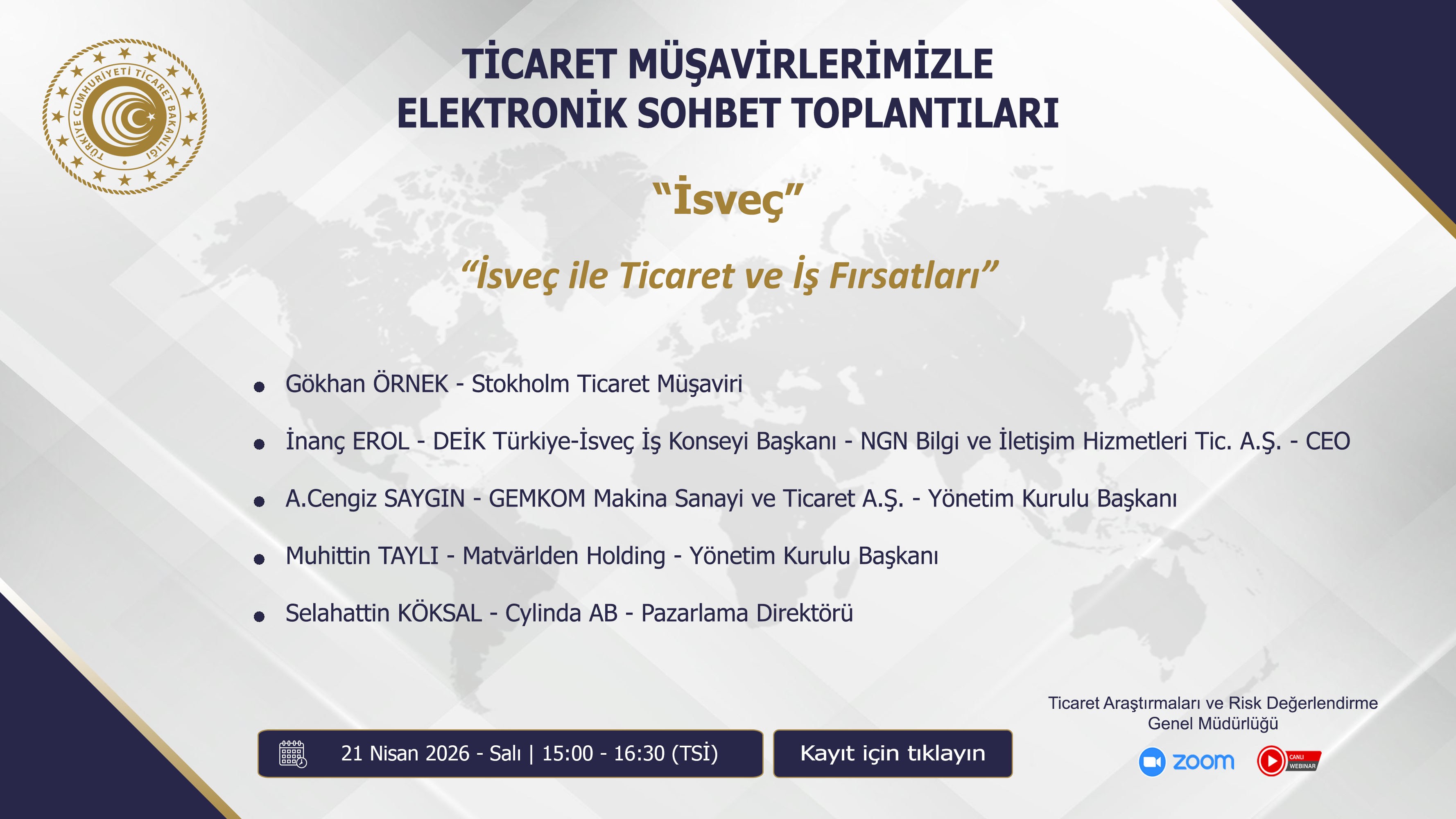 Ticaret Müşavirlerimizle Elektronik Sohbet Toplantıları - İsveç - 21.04.2026